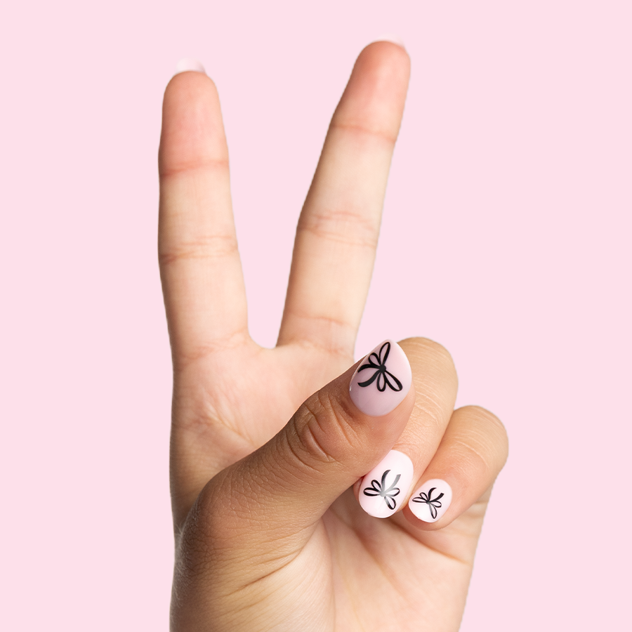 An ultra light lavender mani you’re sure to la la love that’s topped with ultra sparkly chrome that’s straight from the salon and so slay.