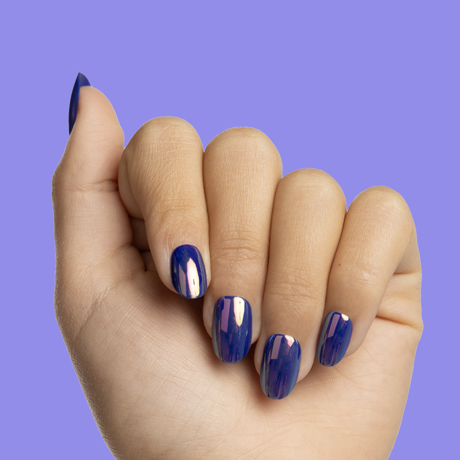 Keep it cool in chrome and majorly magical with this electric deep blue pressie set. This ultra-shimmery combo is pure mani magic.