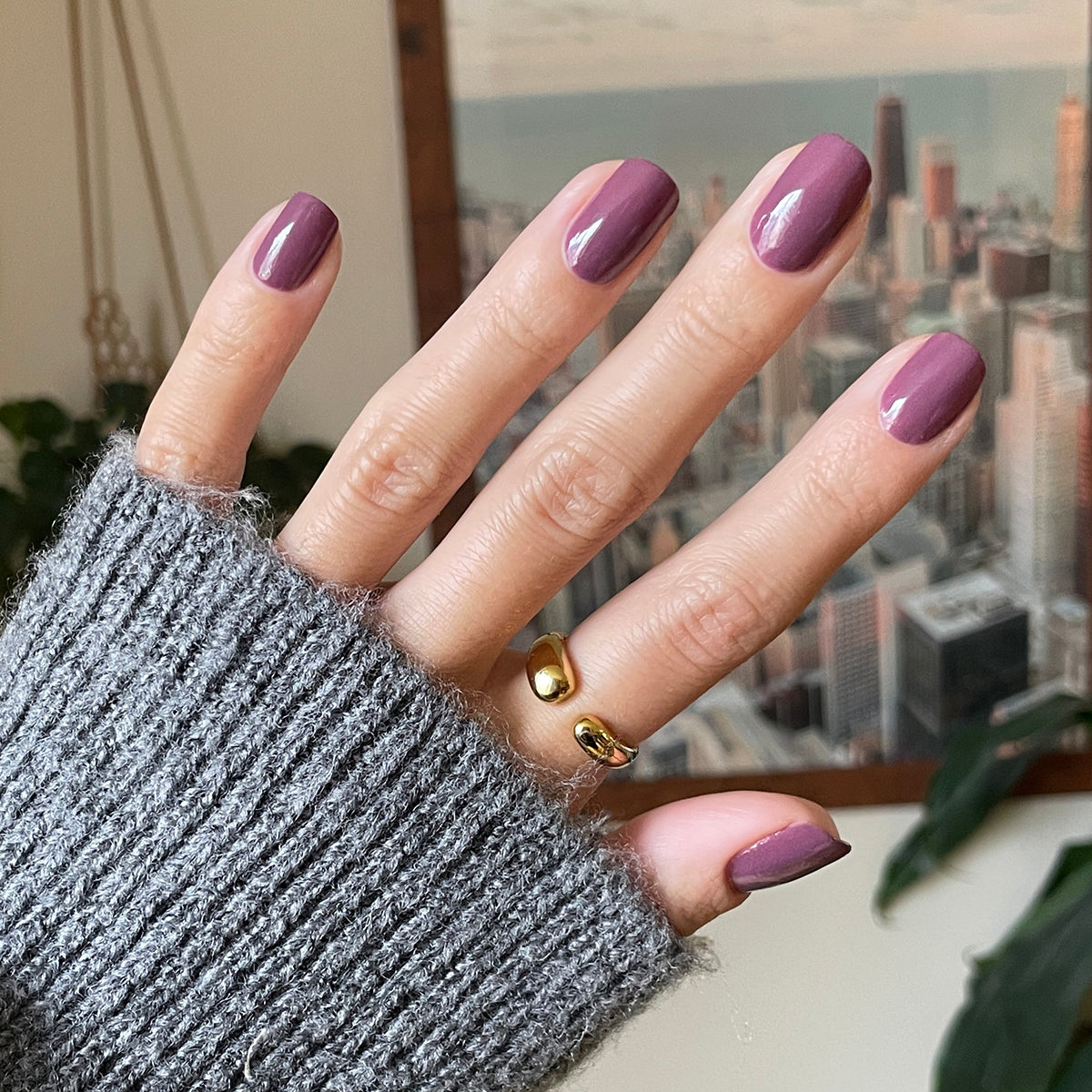 A cozy true mauve that warms up every mani and pedi.