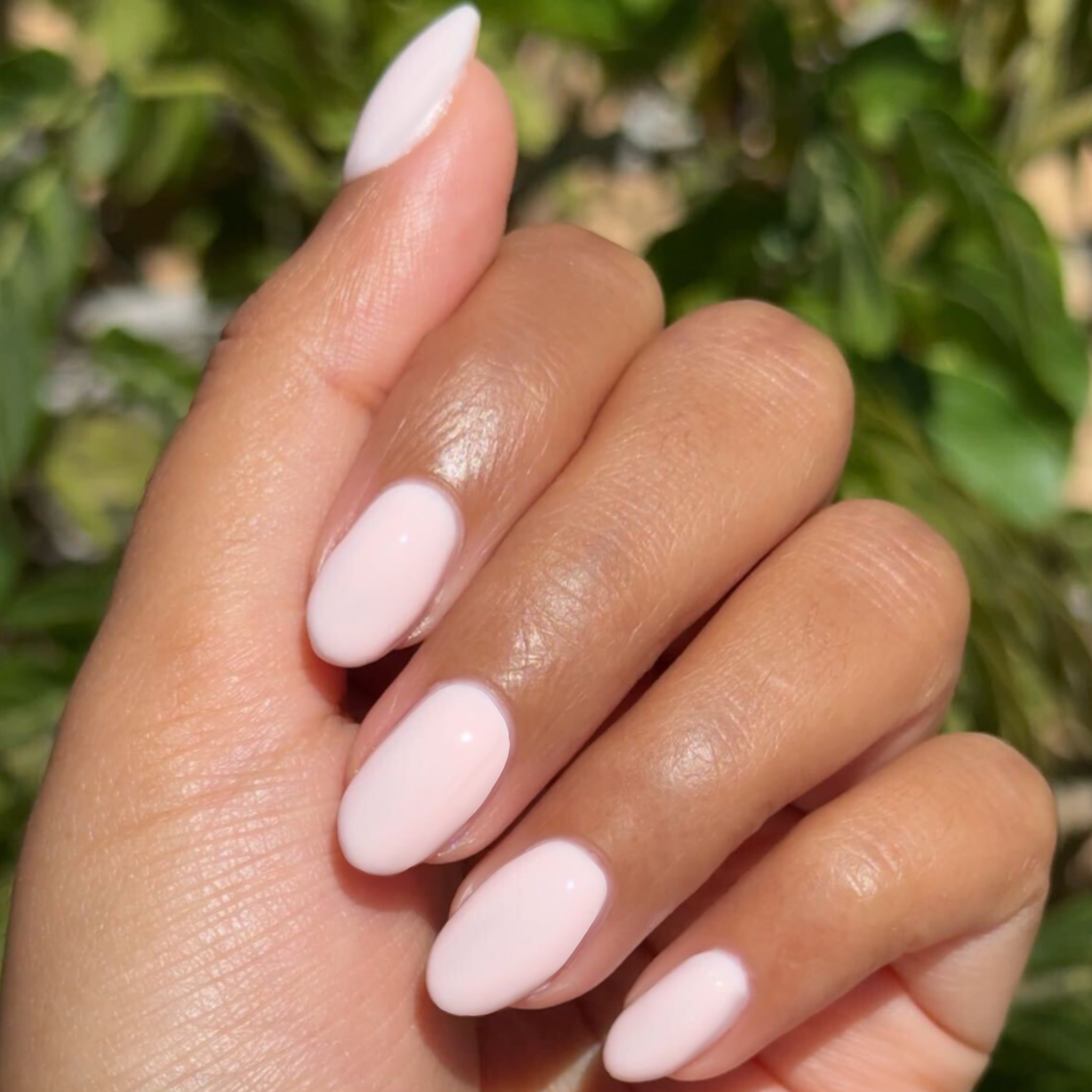 Opaque. goes-with-everything baby pink gel polish for a glowy. goes-with-everything mani.