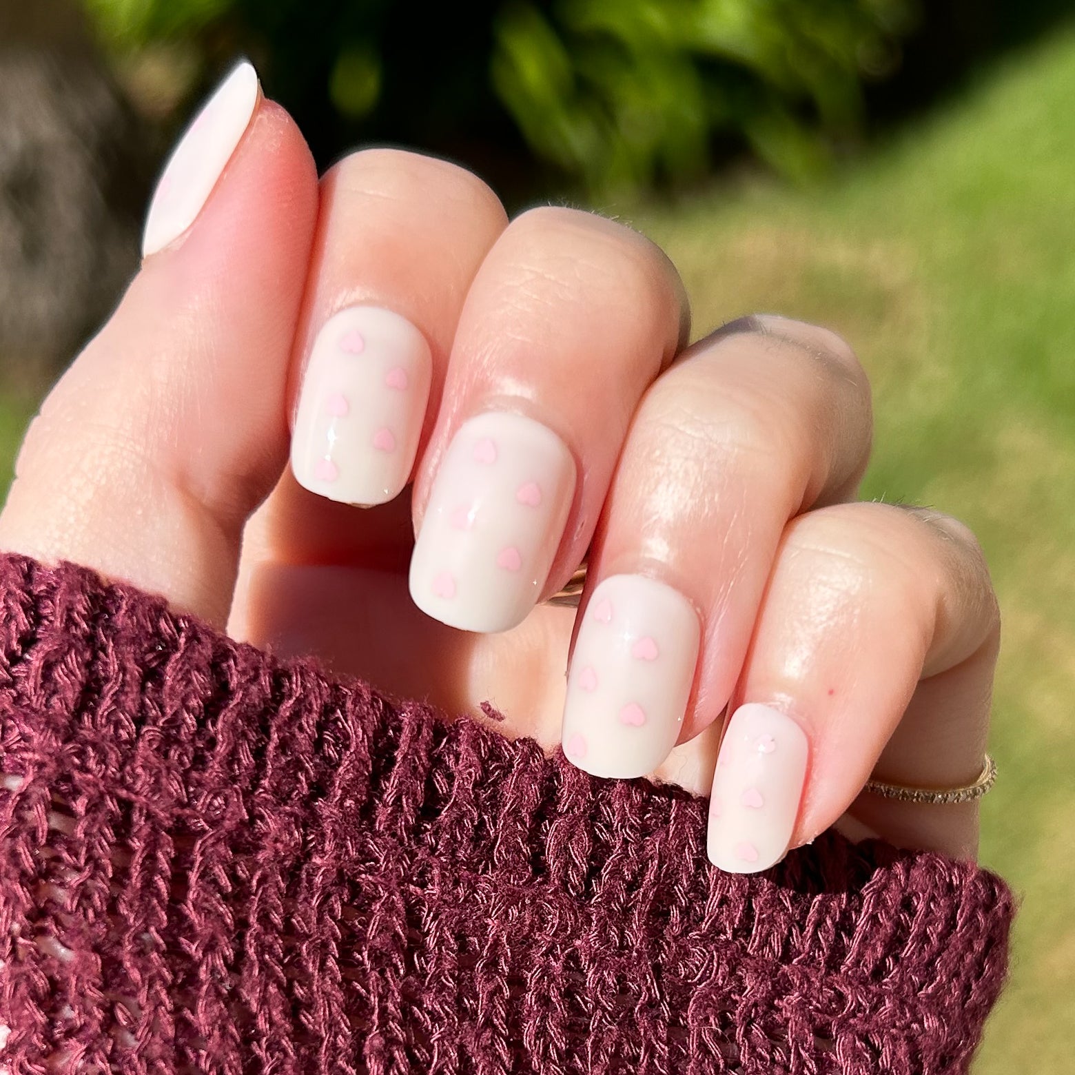 One of our first press-on manis featured little hearts – of course for tabs we had to have another tiny heart mani. XO SGT