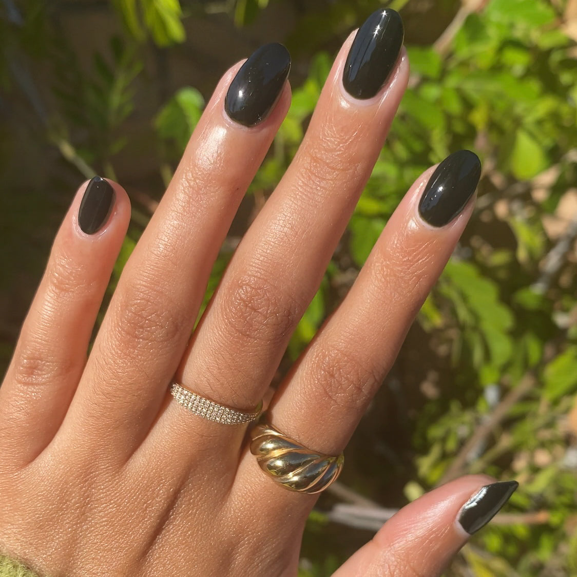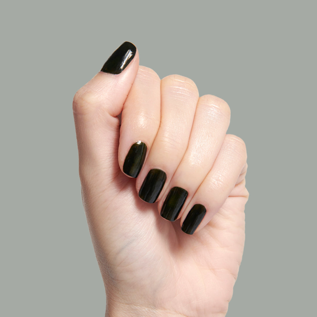 An almost black dark polish that’s *actually* a really dark green.