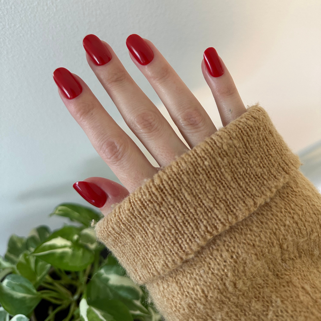 A classic cherry red in a short round for always effortless nails.