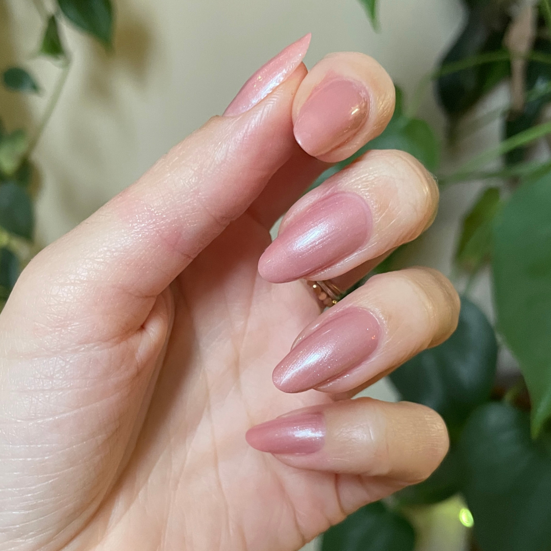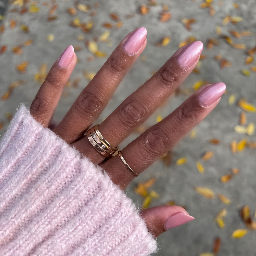 A frosty pink pearl polish you’ll adore.