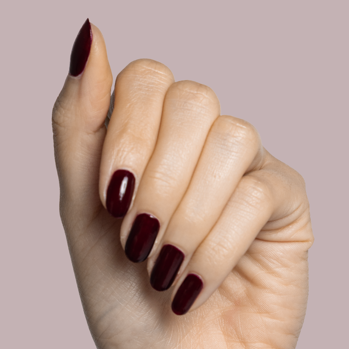 A crimson jelly sheer for perfectly patent leather looking nails.