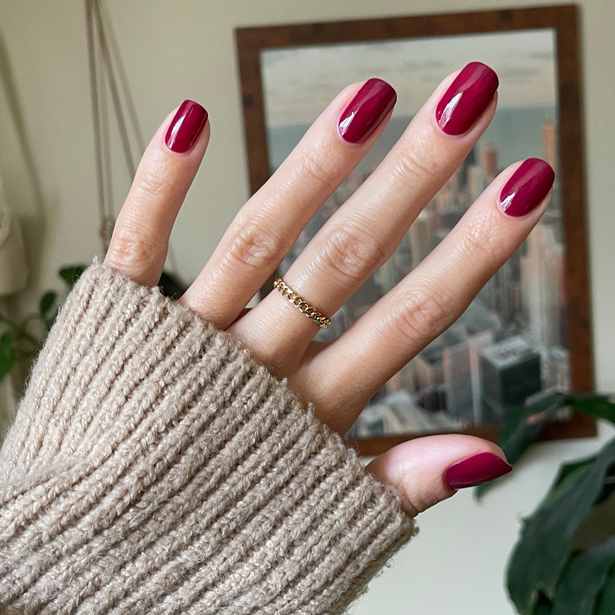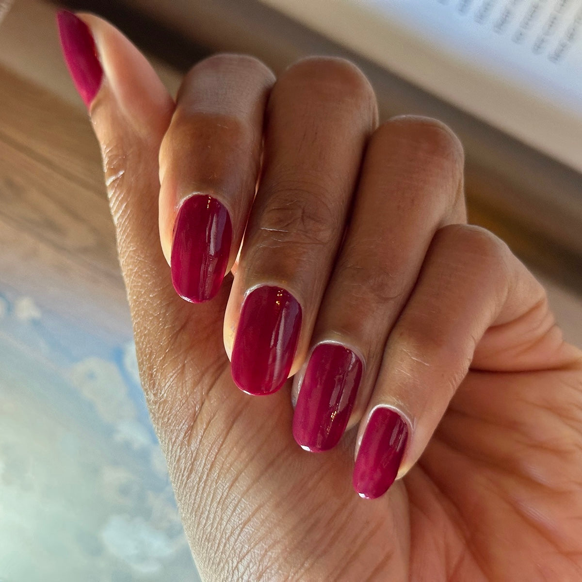 A deep mulberry maroon mani.