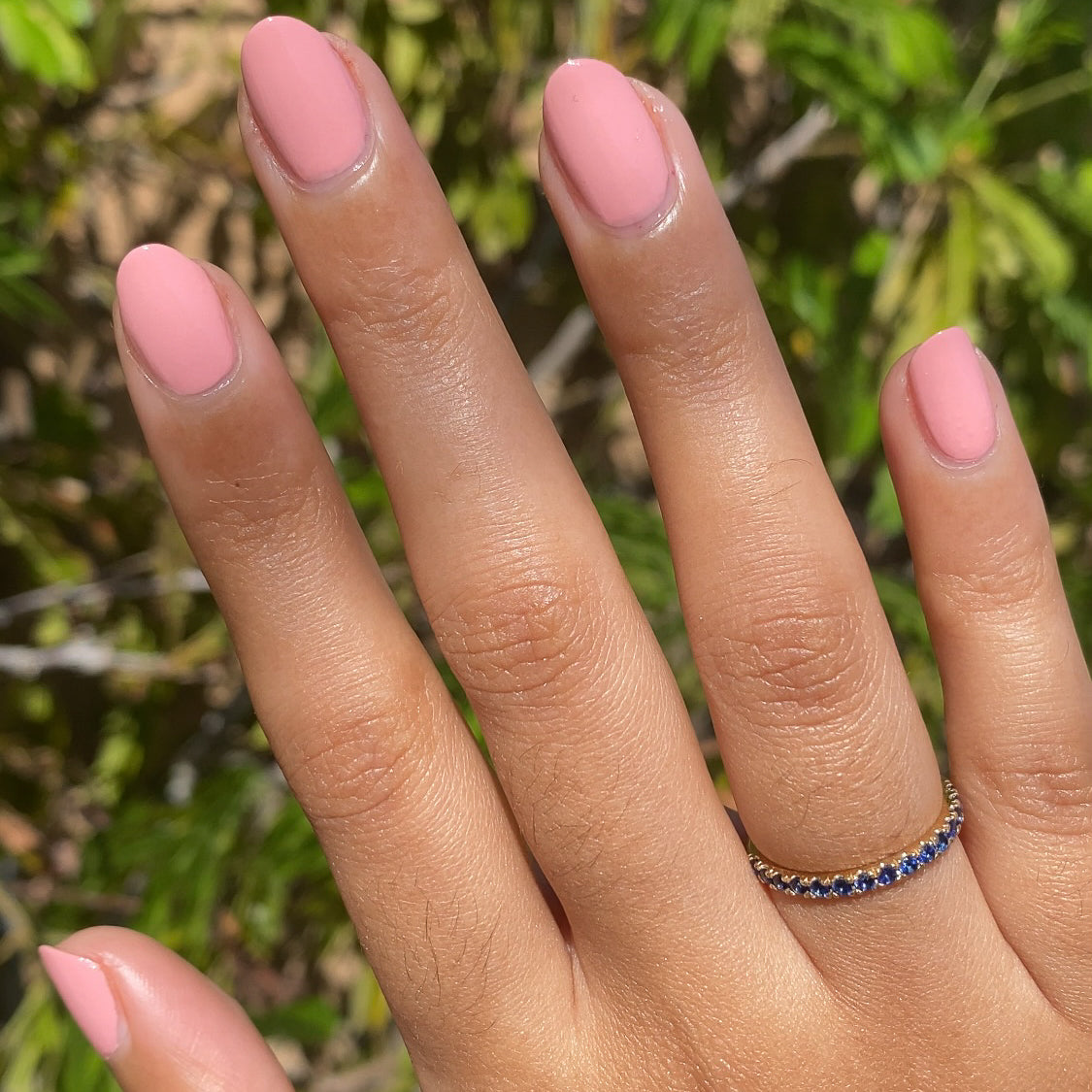 A medium bubblegum pink that’s sweet. but not too sweet.