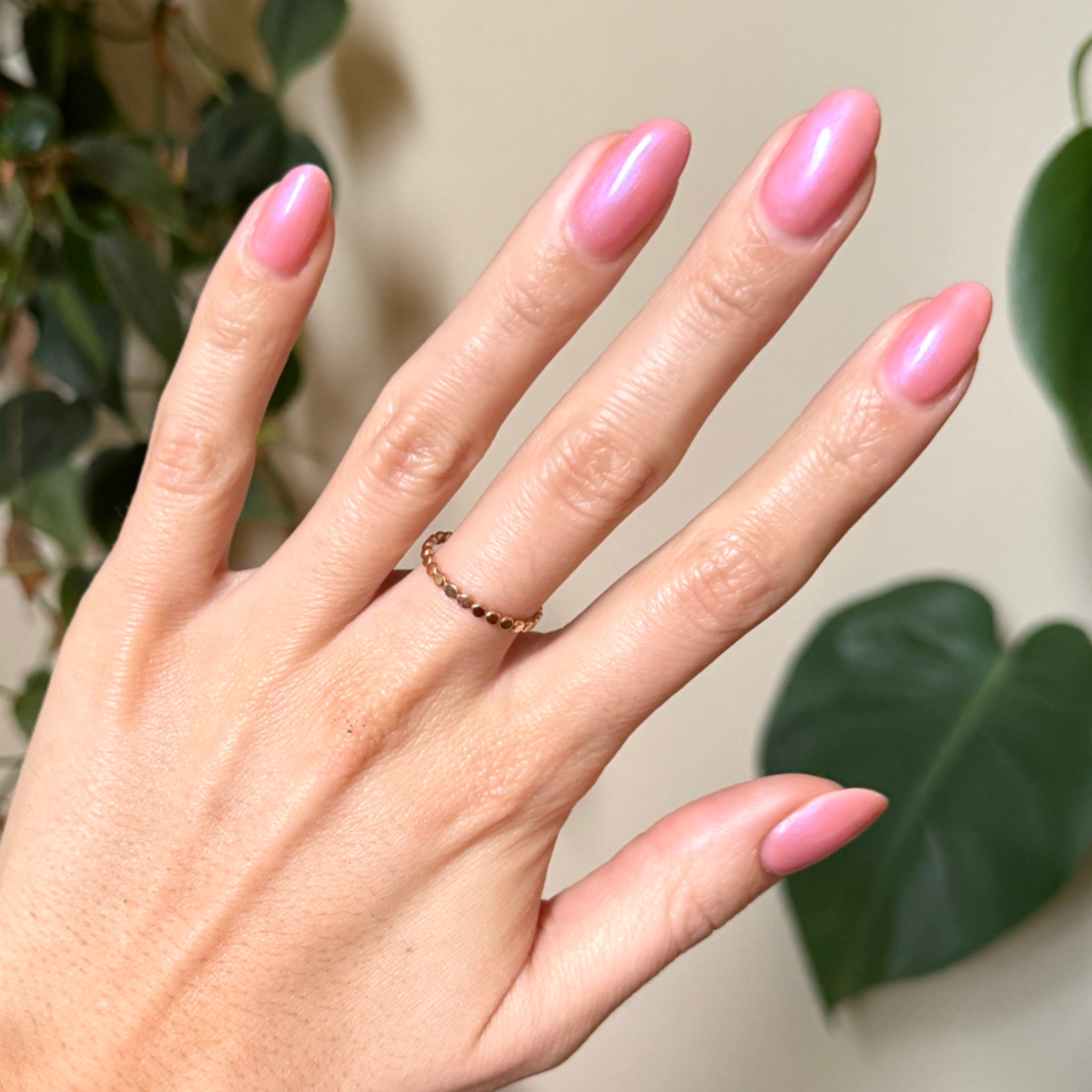 A sheer bubble gum pink-blue iridescent shade that you can’t help but adore.