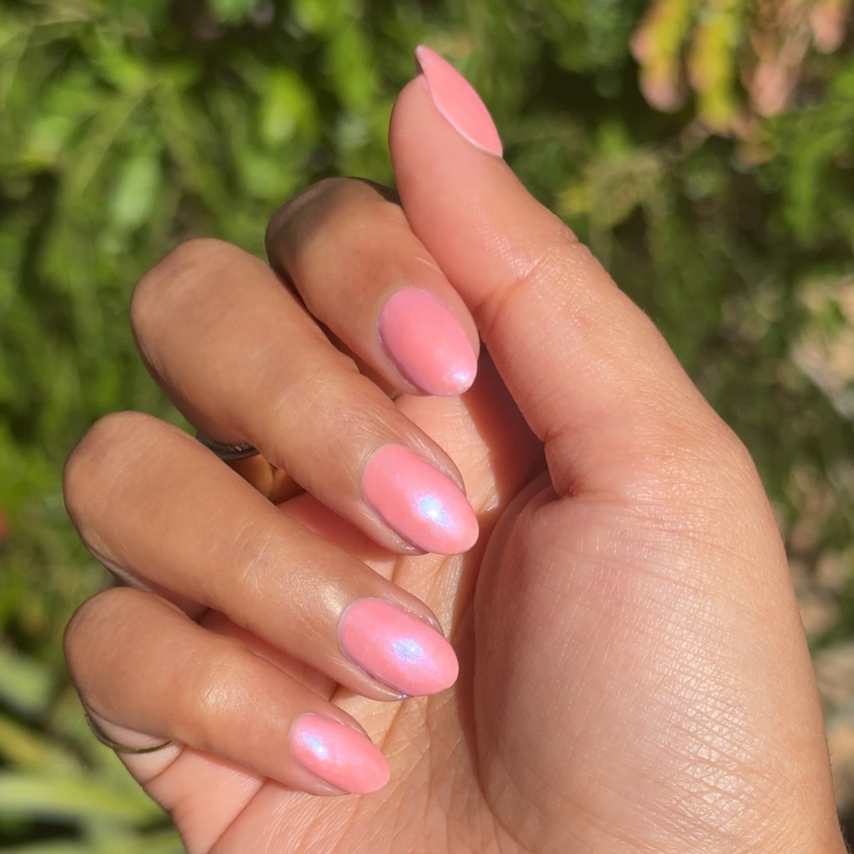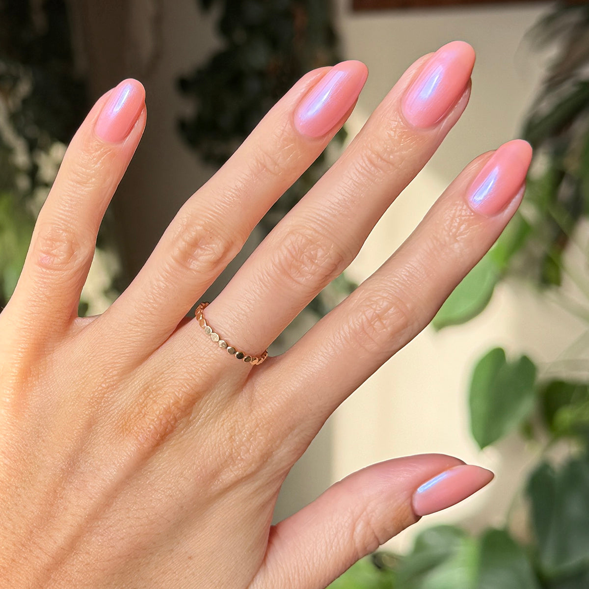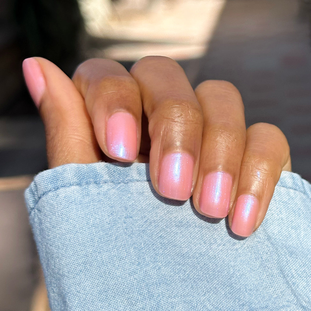 A sheer bubble gum pink-blue iridescent shade that you can’t help but adore.