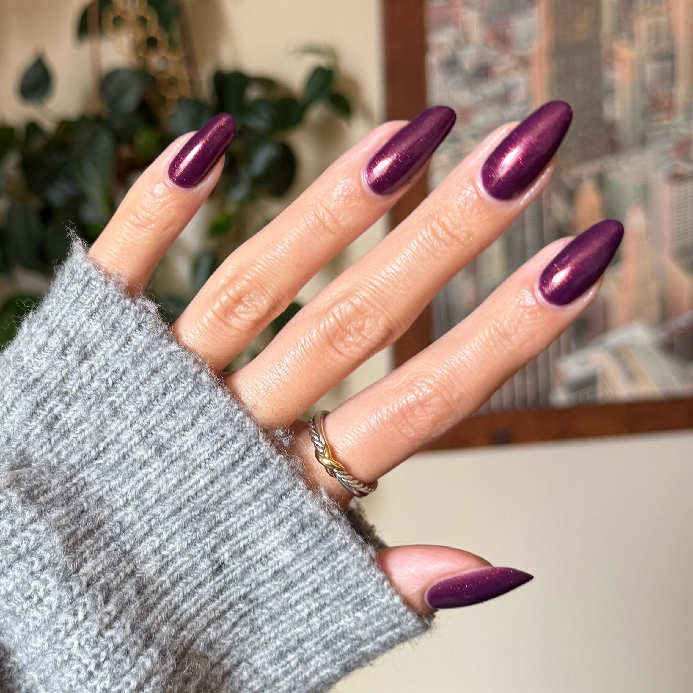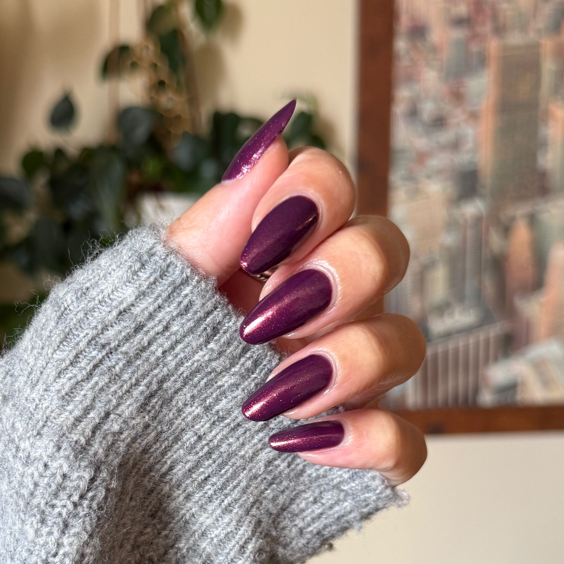 A shimmering mulberry purple that always struts its stuff.