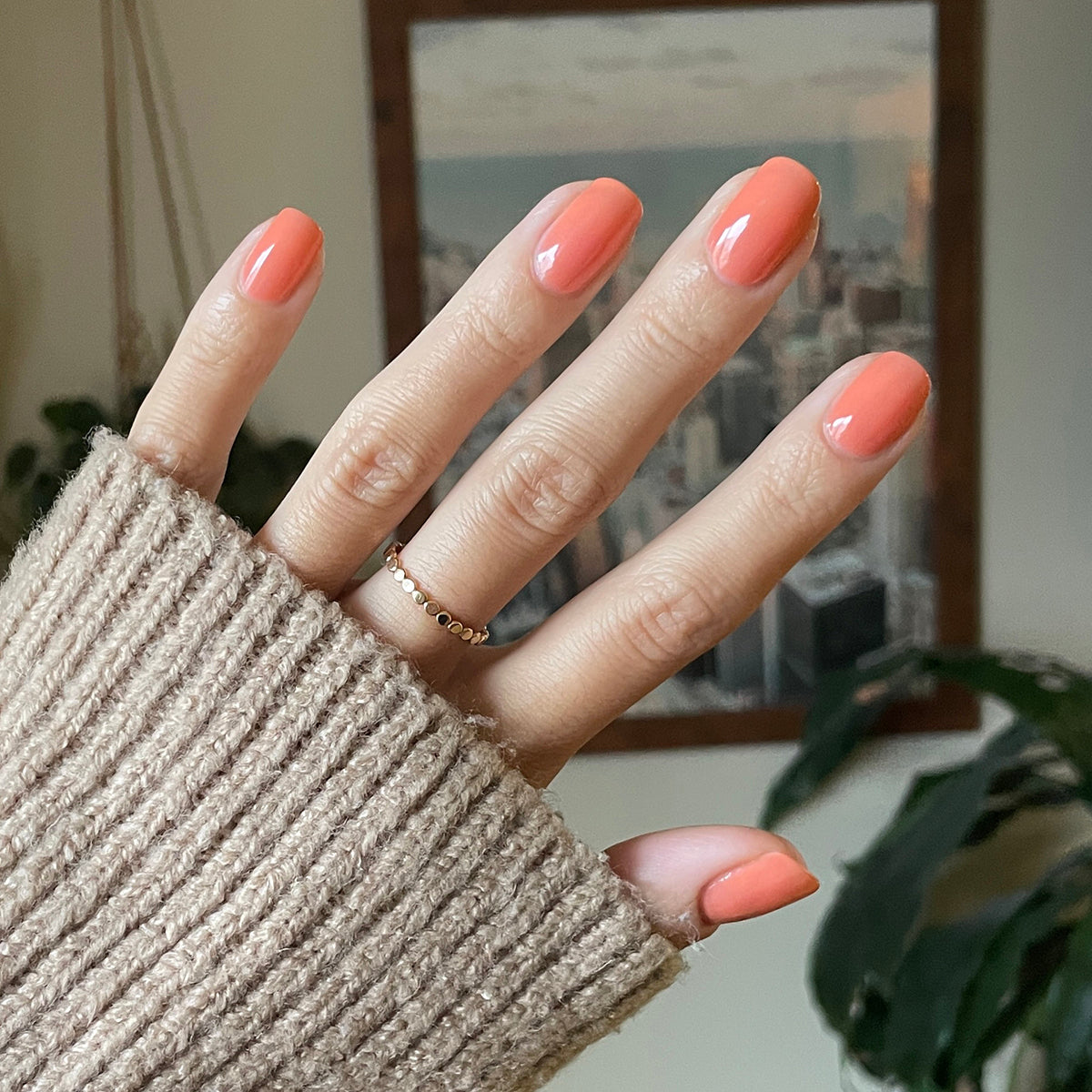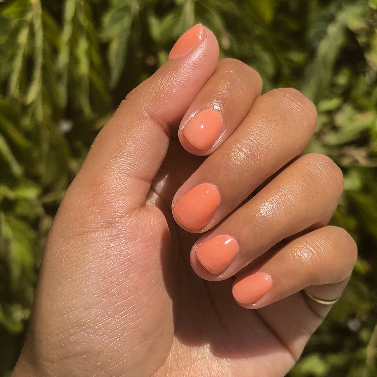 A sheer warm peach shade for barely-there glossy manis and pedis.