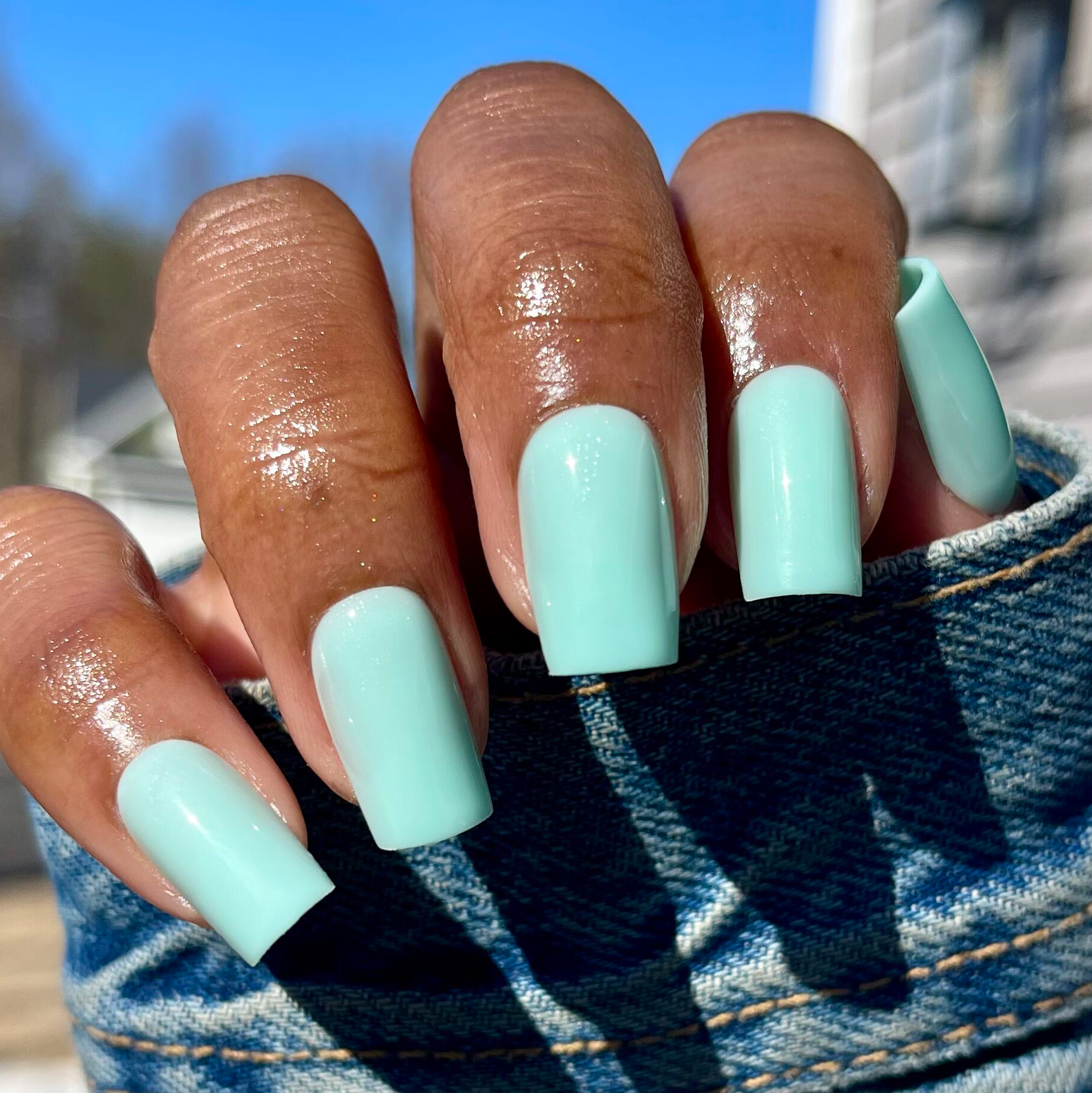 A terrific true turquoise shade that brings the best vibes to your nails.