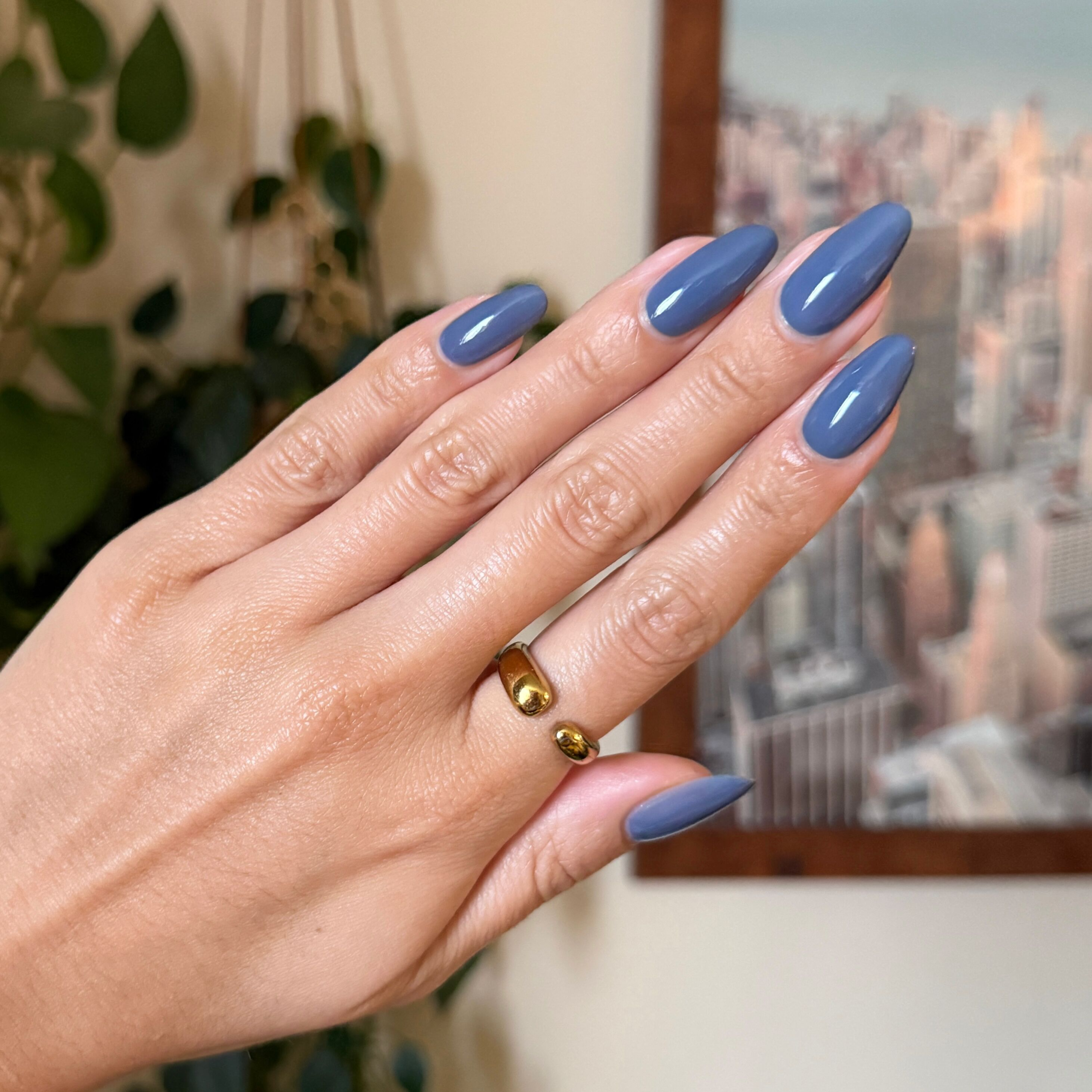 A midtone slate blue that’s effortlessly cool and calming.