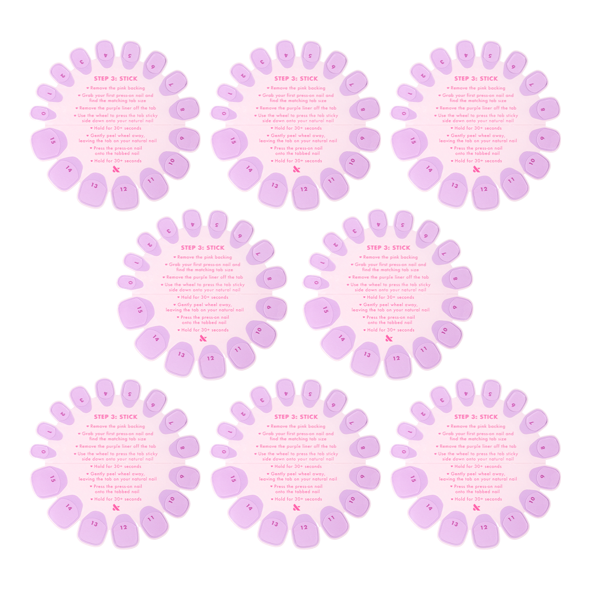 For press-on manis that stick and stay. This set of 8 individual Super Stick Tab Wheels are ideal for our Super Stick Mani for nails that last up to 7 days or can be used with our Instant Mani press-ons for easy-on. easy-off manis whenever you want one.