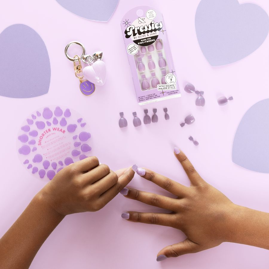 It’s a pastel purple mani party and you’re invited! No seriously — this is a bestselling Olive & June shade. now made for minis.